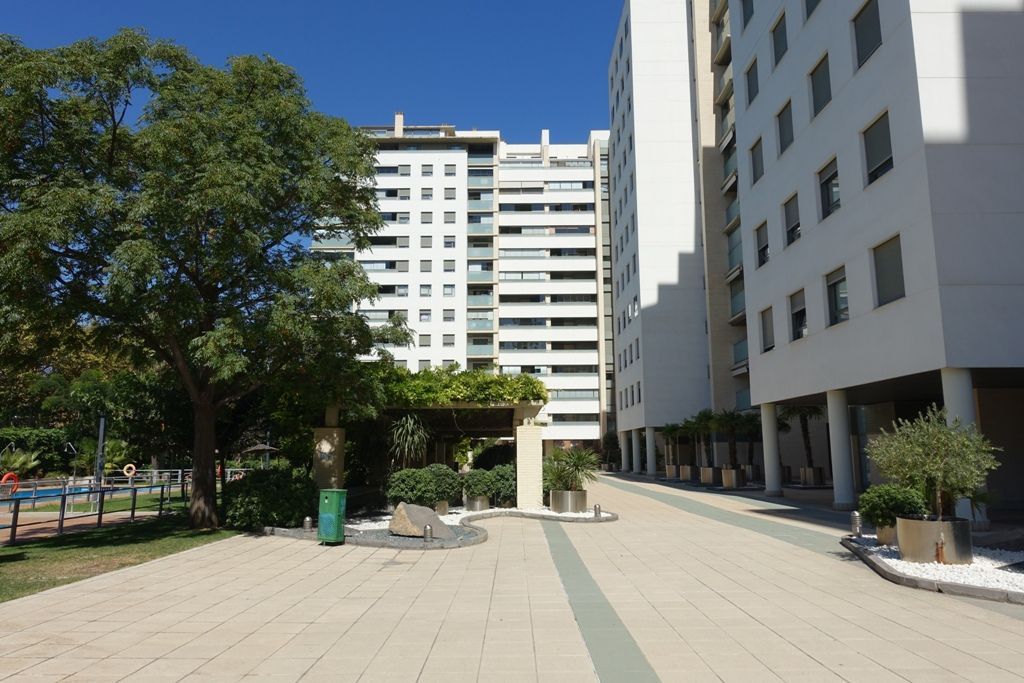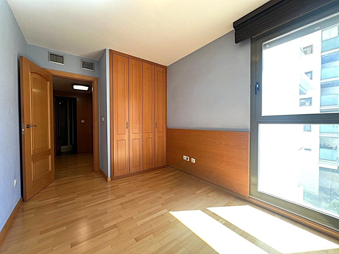 INMUEBLES PÉREZ GUERRERO alquila vivienda muy luminosa y soleada en el Edificio Hispania: urbanización privada en la avenida Gómez Laguna angular con Vía Hispanidad, que cuenta con amplias zonas comunes: piscina, juegos infantiles y zona verde.
