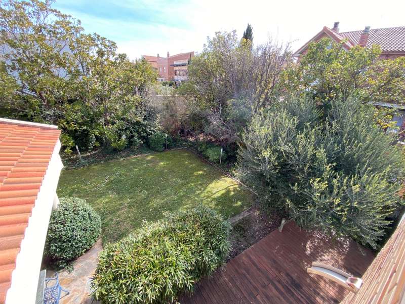 Un magnífico jardín privado de 500 m2 orientado al sureste y sur con césped natural, plantas y arbolado, riego automático y por goteo, barbacoa de obra, fuente decorativa e iluminación. Porches de 45 m2 con toldos. Posibilidad de hacer piscina privada.